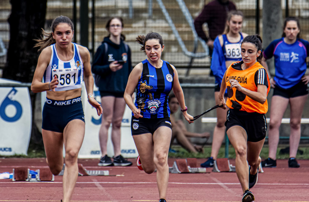 SALIDA DE 100 METROS DENTRO DEL CAMPEONATO DE EUSKADI DE ATLETISMO, CON UNA DE LAS PARTICIPANTES ADAPTADA VISUAL Y SU GUIA